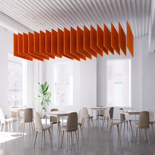 Manufactured from high-performance acoustic materials such as PET, fabric-wrapped panels, or mineral fiber, ceiling baffles deliver excellent mid-to-high frequency sound absorption. Their linear and modular design allows for creative layouts, enhancing both acoustic comfort and architectural appeal.